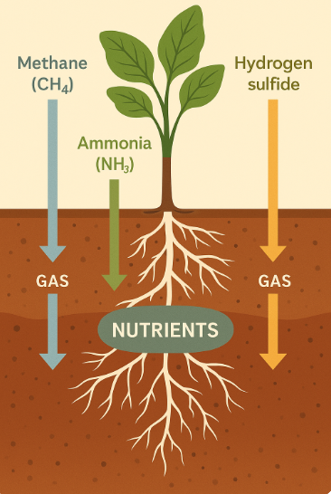 🧪 These gases are byproducts of microbial activity, not directly made for plants — but they do have indirect roles: